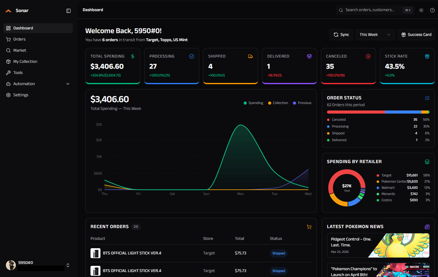 Every member gets full access to Sonar, our ACO dashboard that auto-syncs with your email to track orders, analyze performance, and manage your entire collection across every retailer.